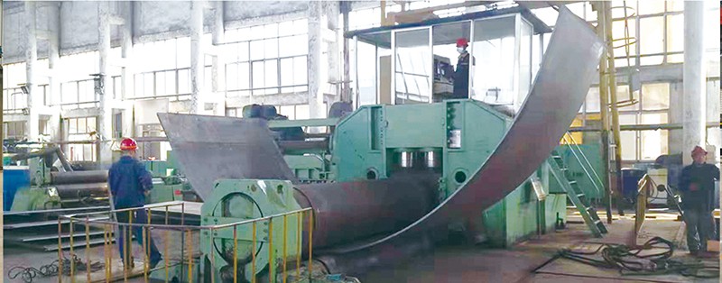 簡析卷板機的工作原理及應用范圍卷板機是對板料進行連續(xù)點彎曲的塑形機床,具有卷制O 同的形狀卷板機規(guī)格平整的塑性金屬板通過卷板機的三根工作輥(二根下輥、一根上輥) 之間,借助上輥的下壓及下輥的旋轉(zhuǎn)運動,使金屬板經(jīng)過多道次連續(xù)彎曲(內(nèi)層 壓縮變形,中層不變,外層拉伸變形),產(chǎn)生塑性變形,卷制成所需要 的圓筒、錐筒或它們的一部分。 卷板機的工作原理是卷板機上輥在兩下輥中央對稱位置通過液壓缸內(nèi)的液壓油作用于活塞作垂直升降運動,通過主減速機的末級齒輪帶動兩下輥齒輪嚙合作旋轉(zhuǎn) 運動,為卷制板材提供扭矩。借助上輥的下壓及下輥的旋轉(zhuǎn)運動,使金屬板經(jīng)過 多道次連續(xù)彎曲,產(chǎn)生塑性變形,卷制成所需要的園筒、錐筒或它們的一部分。